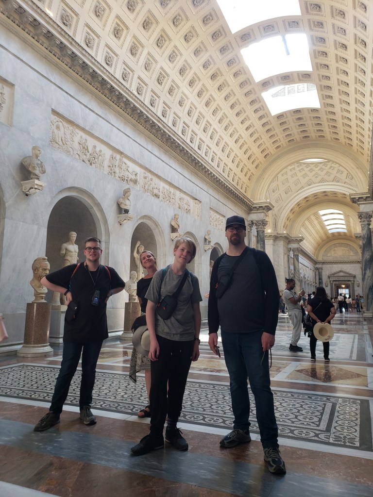 Managed to clean myself up a bit and headed into the museum. Not long into it though and I felt like I needed some help. We asked and they sent for a doctor. The doctor and nurse arrived. Took my blood pressure, low. They took my temp, my blood glucose, oxygen, pulse. They gave me some rehydration powder and some anti nausea meds and offered for us to have a wheelchair. Colin asked them if the Pope could just come and pray for me, but apparently he wasn’t feeling well himself. So, I spent the day in a wheelchair getting wheeled around by Jude and Zane. Everyone was so kind and gracious. I felt so sick and felt bad about all the bother. Apparently what I had was called, mal de debarquement syndrome, which is basically reverse sea sickness. It means you can’t get your land legs back.