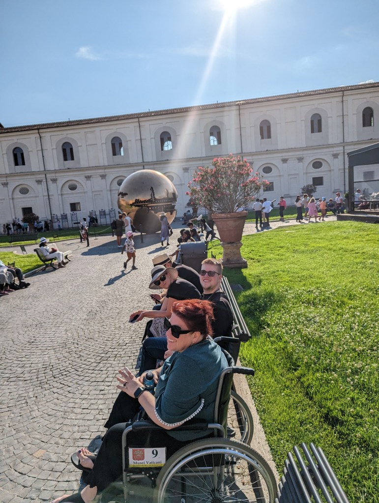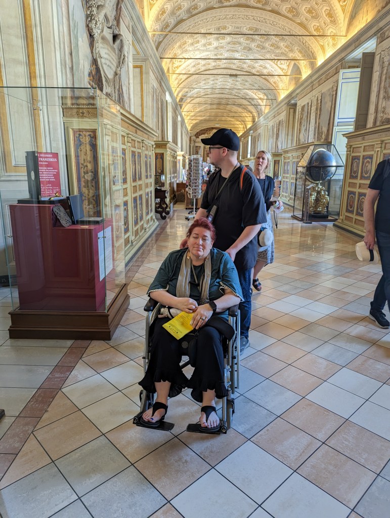We got to go into the Sistine Chapel a secret back way and skipped the queue which was an advantage of being in a wheelchair. We saw so many sculptures and works of art. What an incredible collection of art – some of it amazing, some of it incredibly odd. I gave up control of taking photos while we were there and I wasn’t able to enjoy the art as much as I would have liked, but was feeling a bit better at the end.