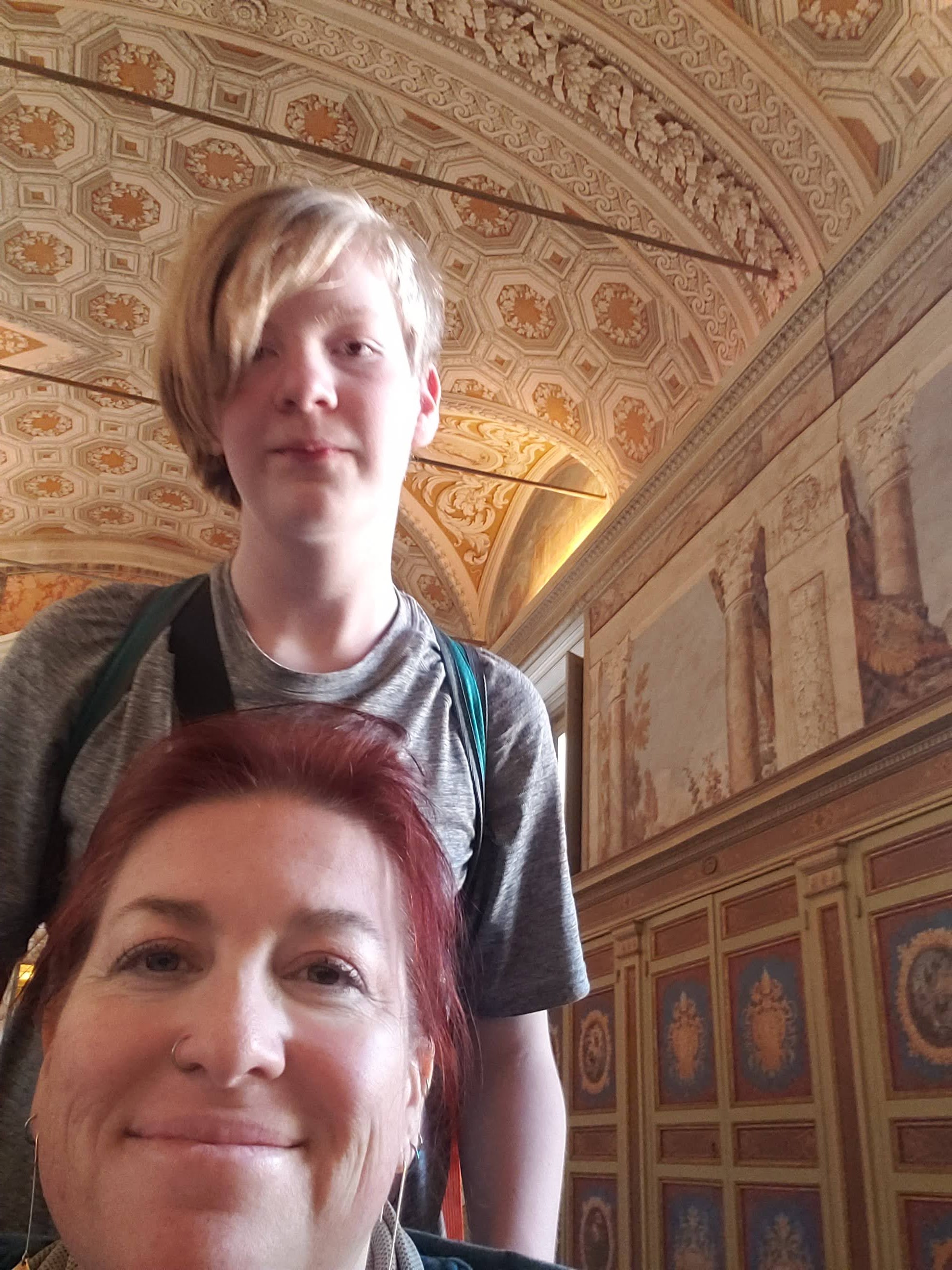 Managed to clean myself up a bit and headed into the museum. Not long into it though and I felt like I needed some help. We asked and they sent for a doctor. The doctor and nurse arrived. Took my blood pressure, low. They took my temp, my blood glucose, oxygen, pulse. They gave me some rehydration powder and some anti nausea meds and offered for us to have a wheelchair. Colin asked them if the Pope could just come and pray for me, but apparently he wasn’t feeling well himself. So, I spent the day in a wheelchair getting wheeled around by Jude and Zane. Everyone was so kind and gracious. I felt so sick and felt bad about all the bother. Apparently what I had was called, mal de debarquement syndrome, which is basically reverse sea sickness. It means you can’t get your land legs back.