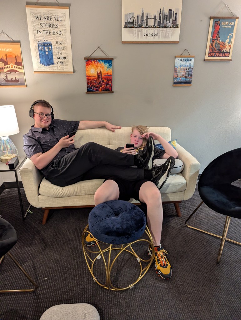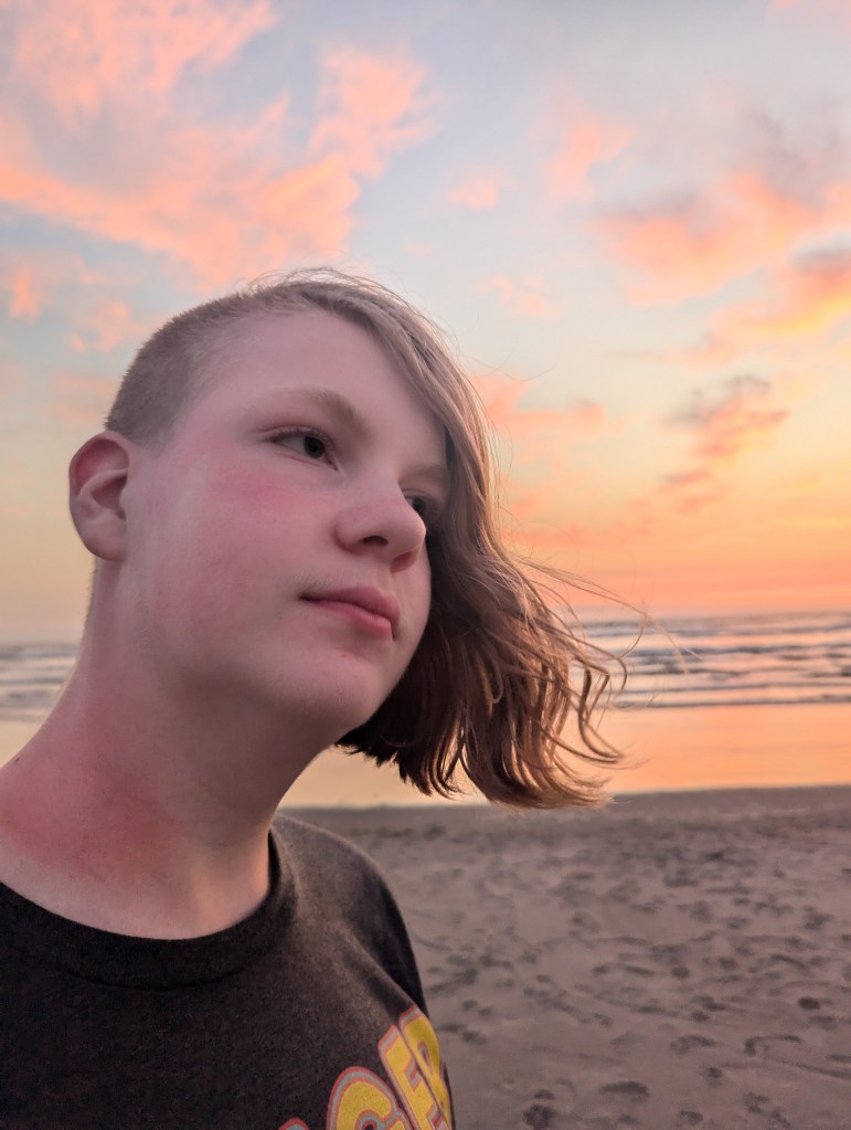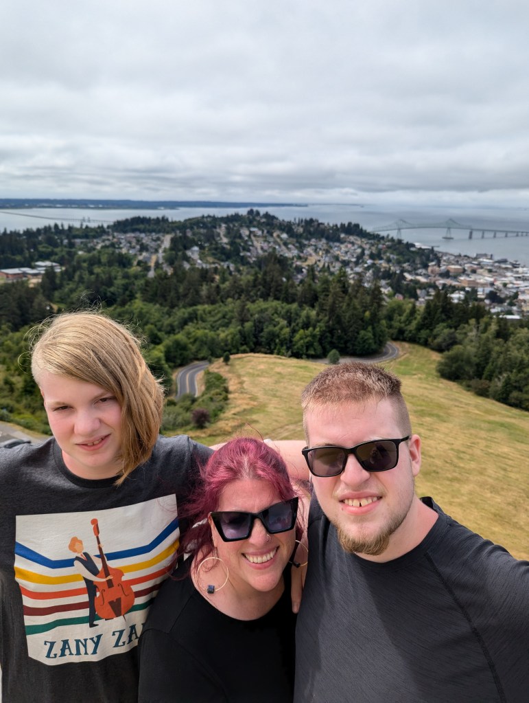July involved family time and fireworks on the Independence day. I visited my sister in Gresham, Oregon for some sister time – enjoyed fresh blueberries, thrifting, and tea. We enjoyed Slurpees on Seven Eleven Day. Visited the High Desert Museum and checked out the Bigfoot exhibit (I’ve seen Bigfoot in real life). We planted the Westside Community Garden as well as our personal garden on the hottest weekend of the year. We had smokey days due to the wildfire. The boys both did intern work. Zane worked at a local reptile pet shop – cleaning cages, and feeding the critters. Jude worked with Cenith Innovations helping with a drone project. We celebrated Zane’s 15th birthday and headed to the coast for our annual coast trip.
